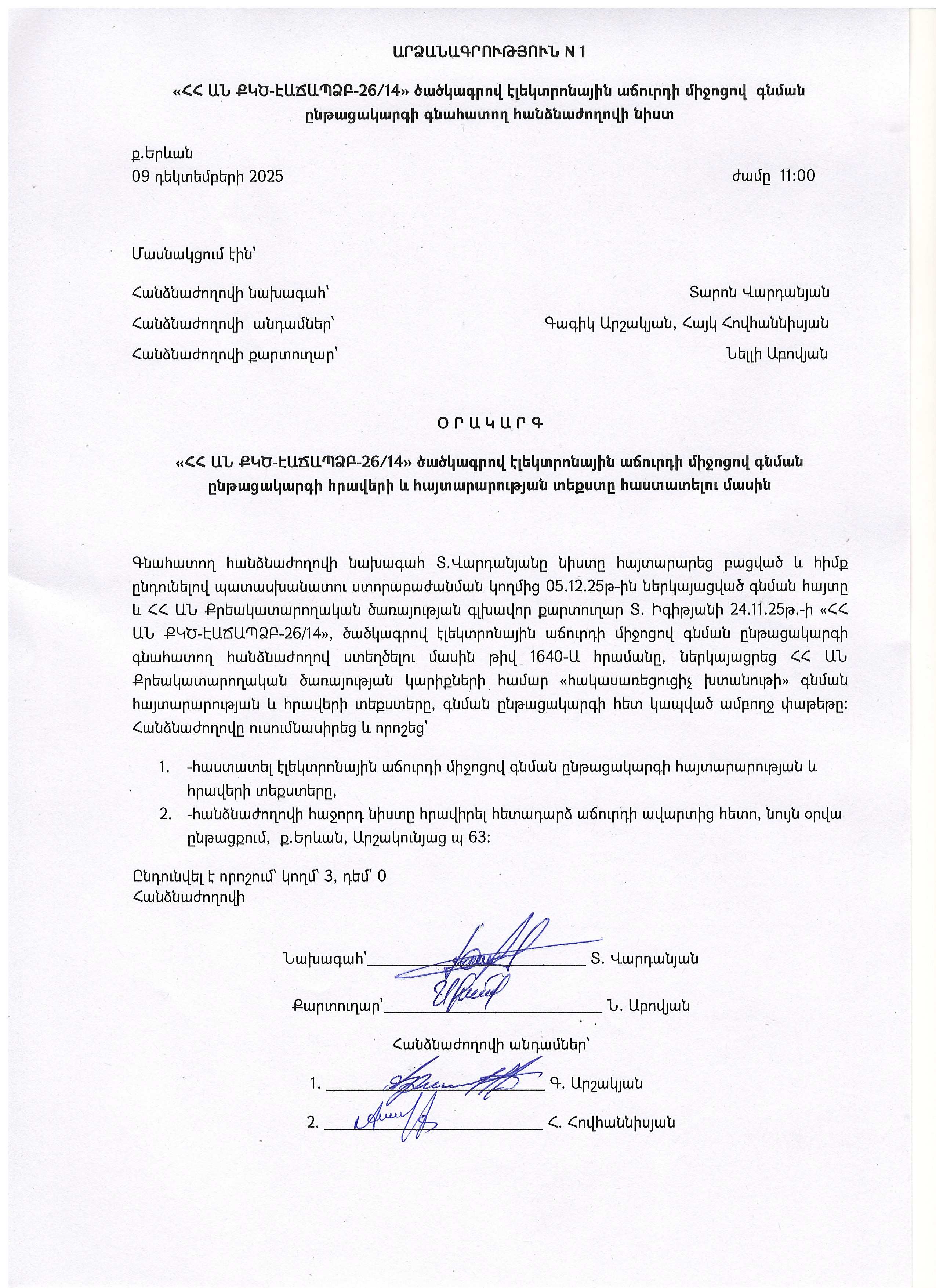 ՀՀ ԱՆ ՔԿԾ-ԷԱՃԱՊՁԲ-26/14
